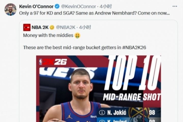 美记点评2K26中投前10:KD和SGA只有97?还和内姆哈德一样😅?