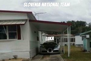 自媒体Luka Updates晒图为欧锦赛预热。图中是一个破败的小院中停着一辆豪车。豪车上面标注着“Luka”,而这个小院则被标注为斯洛文尼亚男篮。