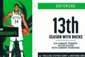 可能离队?十三载忠诚坚守!字母哥效力雄鹿时长现役第3仅次库追