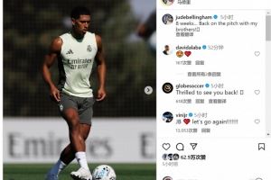 体育资讯9月10日讯 贝林厄姆更新社媒动态,晒出恢复训练的照片。