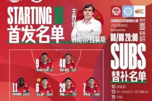 中超联赛第20轮 河南俱乐部酒祖杜康VS深圳新鹏城首发及替补名单